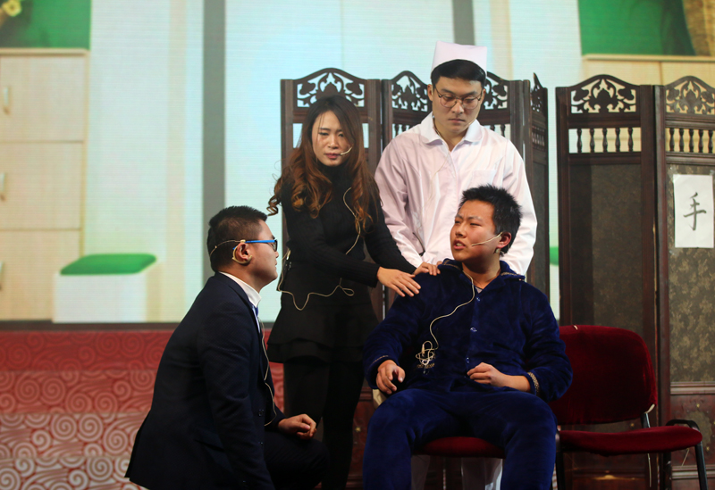 晚会分为“伴你挥别昔日年华”、“与你一起拥抱时光”、“陪你度过漫长岁月”三个篇章,mg冰球官网师生同台主持,各学院倾情推送特色节目,为现场观众奉上年度的艺术饕餮盛宴。教师代表舞动《中国美》彰显了教师们对中国古典文化的探求和理解。辅导员小品《三句半》以幽默风趣的口吻和形象的表演再现了辅导员工作中的苦辣与辛酸,体现出辅导员对学生的热情和责任心。相声《妙语连珠》中,学生与导师同台演出,用独到的观点、犀利的言语叙述了当代今热点事件的思考和追问。幕影舞《心路》应用光影原理再现了一群青年人相聚通大,并在这片热土是逐渐成长、成熟的心路历程。《歌剧魅影》在悠扬的钢琴声让我们重温哥德式爱情,《默》、《小幸运》、《夏洛特的烦恼》、《再见再见》等歌曲让我们步入青春的记忆长河,回忆懵懂的昔日年华。古典舞《礼仪之邦》用汉唐的广袖华服引领我们追溯过往,领略中国华夏古老山水人文和礼仪风韵。双簧《我的行医梦》中笑料不断,两个男人在不同的环境中,演绎了自己的爱情观和职业观,逗乐全场师生。哑剧《电影院的故事》、小品《365个祝福》等语言类节目用欢乐与笑声陪伴我们度过温馨的夜晚。