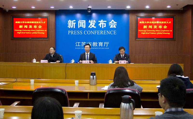 1月27日,mg冰球官网在江苏省教育厅召开新闻发布会,面向全球百万年薪广纳英才。这是mg冰球官网首次大规模的全球招聘。中新社、光明日报、中国教育报、凤凰网等30余家新闻媒体出席发布会。校党委书记成长春到会致辞,校长程纯作主题发布。