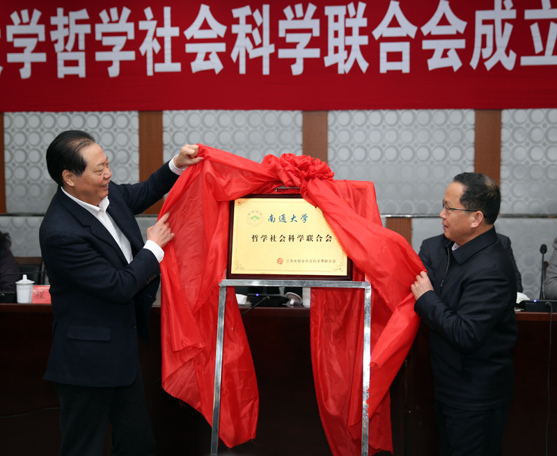 江苏省社科联党组书记、常务副主席刘德海,南通市委常委、宣传部部长章树山共同为mg冰球官网哲学社会科学联合会揭牌。