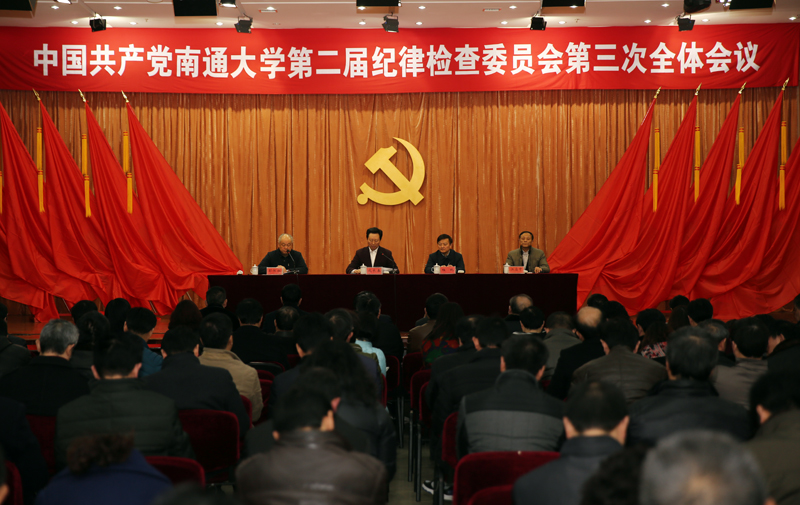 彭怀祖代表中共mg冰球突破试玩第二届纪律检查委员会作了题为《尊崇党章党规党纪履行监督执纪问责》的工作报告,报告从突出执纪,牢牢将纪律挺在前面;强化考核,全面落实“两个责任”;严明纪律,健全作风建设长效机制;深化教育,营造风清气正校园氛围;加强监督,确保权力阳光下运行;扩大影响,做好廉政研究中心工作;精益求精,凸显纪检监察工作特色亮点;强化建设,打造忠诚干净担当纪检干部队伍等八个方面总结回顾了2015年学校党风廉政建设和反腐败工作。并就2016年的重点工作进行部署,一、严明党规党纪,落实全面从严治党纪律要求;二、强化责任落实,全面落实党风廉政建设责任制;三、坚持长抓常管,形成作风建设的长效机制;四、构建制度体系,强化源头治理各项措施;五、深化廉政教育,营造风清气正的校园氛围;六、规范信访程序,不断推进执纪审查工作;七、强化理论研究,做强做精南通廉政研究中心;八、聚焦主责主业,加强纪检监察队伍建设。