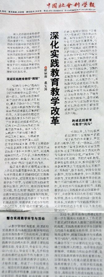2月4日出版的第902期《中国社会科学报》教育学专栏刊登mg冰球官网教务处顾健辉研究员题为《深化实践教育教学改革》的学术文章。