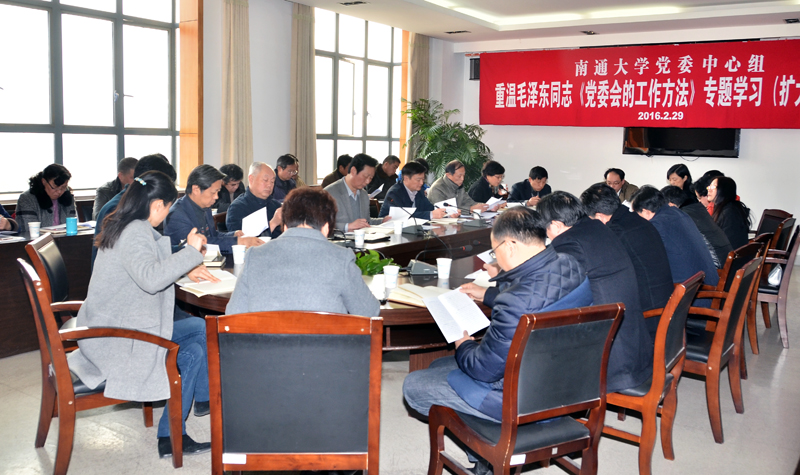 2月29日下午,校党委中心组召开专题学习(扩大)会议,重温毛泽东同志《党委会的工作方法》,深入学习贯彻习近平总书记关于“学习毛泽东同志《党委会的工作方法》,加强党委(党组)领导班子建设”的重要批示精神。校党委书记成长春主持会议并讲话。校领导程纯、彭怀祖、江应中、高建林、丁斐、蒋乃华、樊小东、顾菊平,校党委中心组成员,各分党委、党总支书记,党务部门、群团组织主要负责人出席会议。