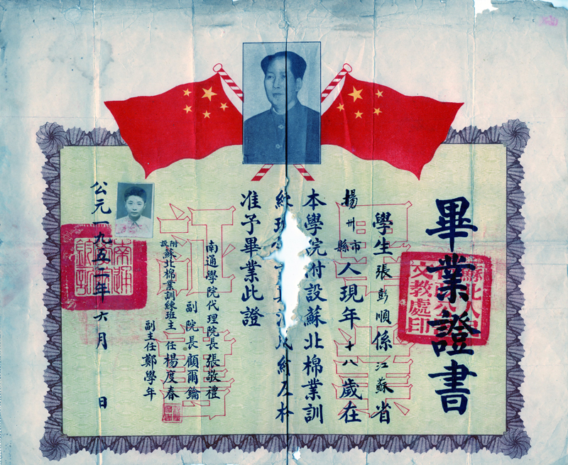 张先生捐赠的毕业证书。