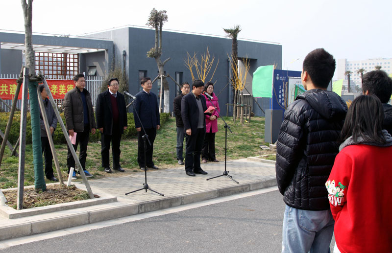 3月14日下午,启东校区举行“慈孝林”捐建仪式,校长程纯、副校长樊小东与启东校区教职员工、学生代表共同参加活动。