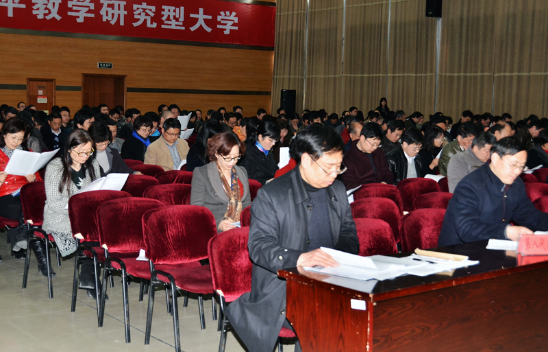 校长程纯代表学校向大会作学校工作报告和学校“十三五”规划起草情况说明。报告从教育教学改革取得佳绩,人才培养质量稳步提高;深化人事制度改革,师资队伍水平不断提升;以学科建设为龙头,全面提升学科建设水平;加强科研管理服务,提升创新和服务地方能力;加强教育管理服务,促进学生全面发展;加强国际合作与交流,提升国际化教育水平;强化财务审计工作,不断增强财经保障能力;强化管理服务职能,服务保障优质工程取得实效;推进医疗服务品牌建设工程,科教兴院成效明显等九个方面简要回顾了2015年工作。