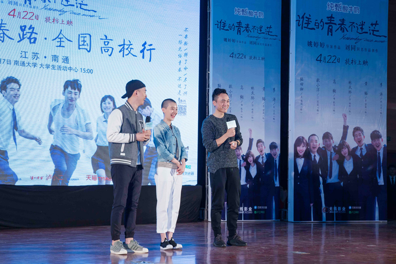 活动在剧组人员勇敢追梦的故事短片中拉开帷幕。刘同回顾了自己写书却又迟迟不“红”的经历。他说20岁时写下的日记带着青涩与矫情,但是这些矫情也是青春的一部分。刘同向现场同学们介绍了导演姚婷婷的认真严谨,连一片树叶下落的镜头都力求精确;演员白敬亭为了影片等了整整一年;看似冷漠的李宏毅有着火热的内心,他说无悔的青春就要做到“拼了命”、“尽了兴”……《谁的青春不迷茫》剧组的男二号丁冠森和女二号王鹤润也与同学们分享了他们的心路历程,在讲到因为剧情需要剃去一头长发的独特经历时,王鹤润坦言“就是希望拿出我们的态度,我们要呈现给观众一个真实的青春”。