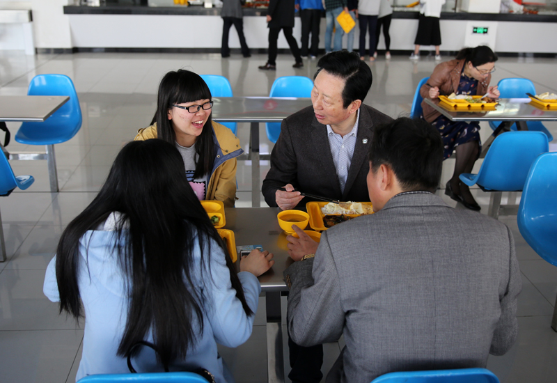 中午,成长春又来到食堂和同学们一同用餐,从食堂菜价贵不贵到学习生活条件,从专业学习到老师教学质量,一起边吃边聊。成长春还认真查看了食堂意见簿,叮嘱相关负责人要为广大学生营造更好的生活环境。