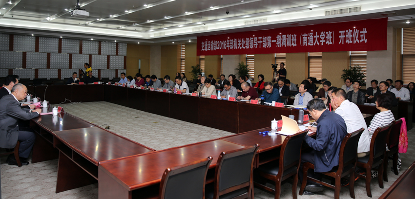 5月9日,交通运输部2016年部机关处级领导干部首期调训班开班。19名学员将以“国学经典与文学修养”为主题,在mg冰球官网开始为期一周的培训学习。交通运输部人教司副司长时骏、南通市人民政府副市长朱晋出席开班仪式并讲话。校党委书记成长春代表学校致欢迎词,校长程纯主持开班仪式。