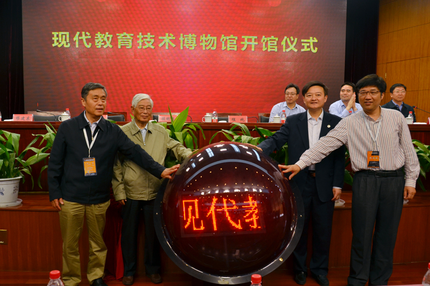 顾明远、丁新、缪建东、程纯共同启动现代教育技术博物馆开馆水晶球。