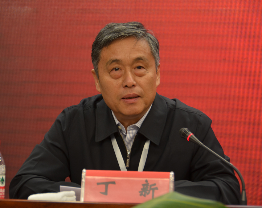 中国教育技术协会副会长兼秘书长丁新讲话。