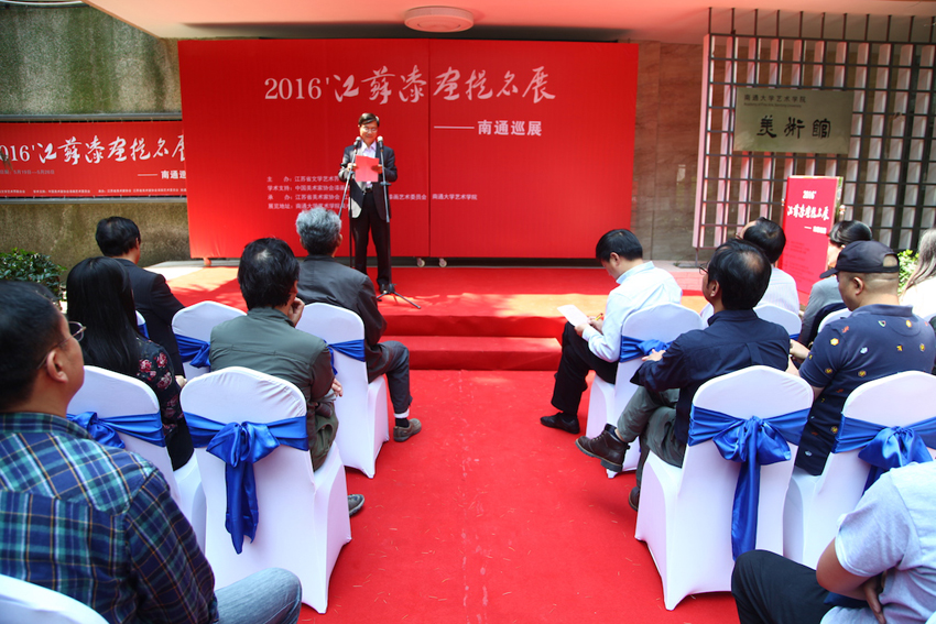 5月19日上午,“2016江苏漆画提名展——南通巡展”在mg冰球官网艺术学院美术馆开幕。中国美术家协会理事、江苏省美术家协会副主席冯健亲,中国美术家协会漆画艺委会秘书长、江苏省美术家协会副主席李永清,副校长樊小东出席开幕式。