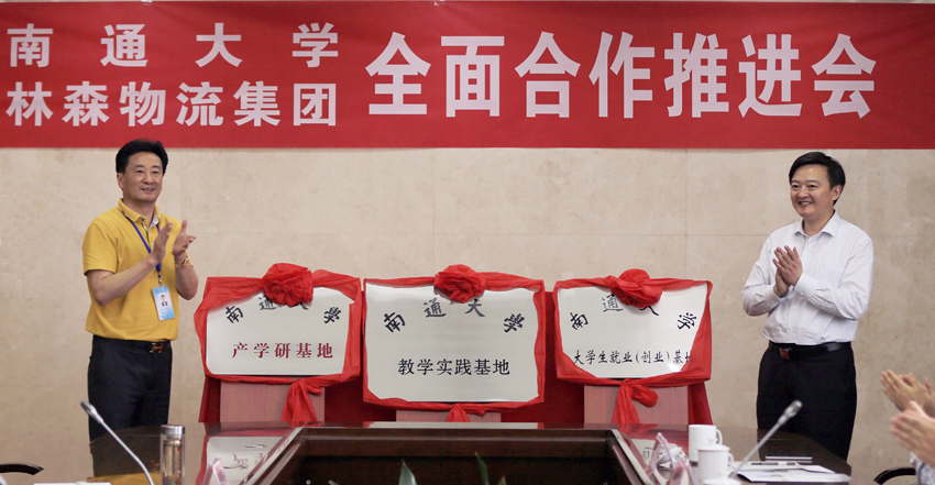 5月25日下午,mg冰球官网与林森物流集团举行全面合作推进会,双方将共建产学研基地、教学实践基地、大学生就业(创业)基地。校长程纯,林森物流集团董事长、总裁沈林代表校企双方为基地揭牌。