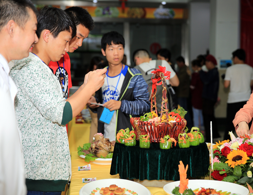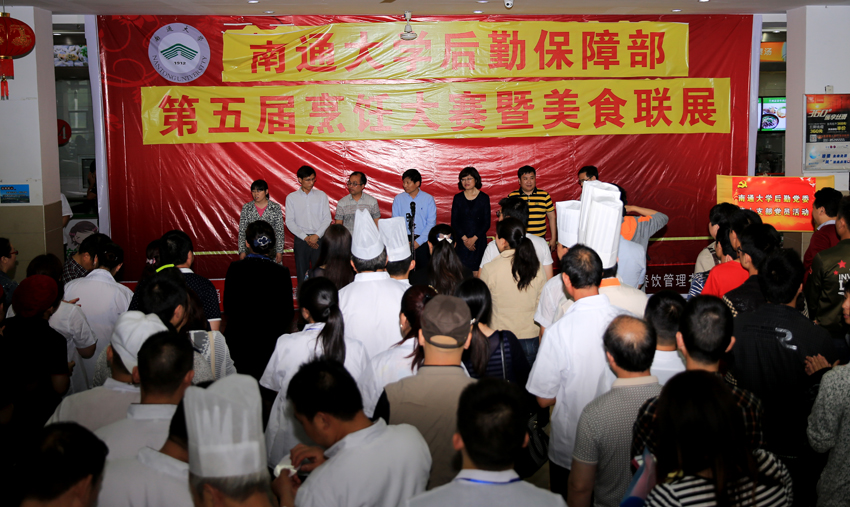 5月27日下午,mg冰球官网举办第五届烹饪大赛暨美食联展。南通市食品药品监督管理局餐饮安全监管处副处长郁卫丰,南通市餐饮商会常务副会长巫明鉴,江苏省餐饮业协会副会长、南通市旅游中专副校长孙勇出席开幕仪式。副校长樊小东宣布大赛开幕。