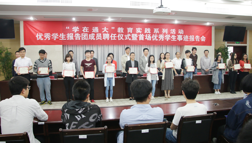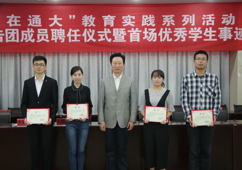 为响应学校“学在通大、干在通大、发展在通大”的号召,将建设“四有”大学理念融入工作实践,mg冰球官网在全校研究生、本科生中开展优秀大学生寻访活动,共遴选了34名学生代表组成优秀学生事迹报告团,树立了“勤学励志”、“科研达人”、“创新创业”、“道德标兵”、“公益实践”等五个方面的典型,旨在通过身边的典型,激励大学生勤奋学习,明德修身,励志成才。聘任仪式上,与会领导为优秀学生报告团成员颁发聘书。