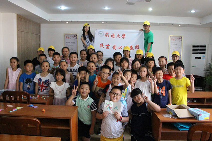 “街校相牵同一心,携手共筑中国梦”7月7日下午,理学院在狼山镇街道南郊社区举行大学生送文化进社区暨爱心图书室揭牌仪式。校团委书记李清湘、狼山镇街道党工委副书记孙步成为爱心图书室揭牌。