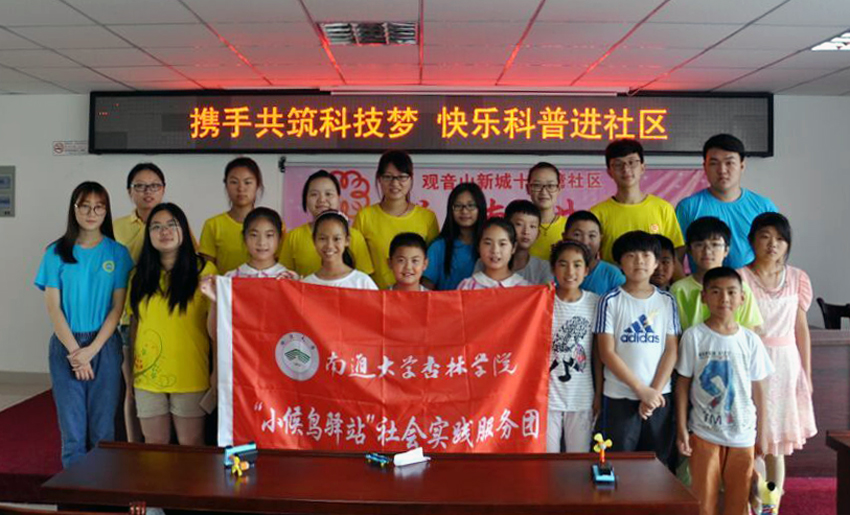 7月15日上午,杏林学院“小候鸟驿站”服务团的全体成员前往南通市崇川区观音山街道十八湾社区,给社区儿童进行科技教育宣讲。