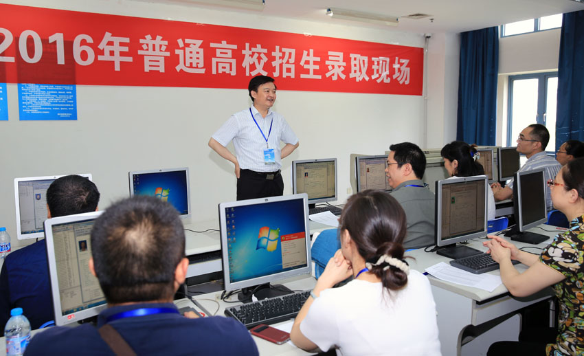 炎炎夏日,虽是暑假,mg冰球官网2016年本科招生录取工作现场依旧是一派繁忙的景象。7月20日上午,校长程纯来到这里,看望慰问奋战在招生录取一线的工作人员,了解mg冰球官网今年招生录取情况。