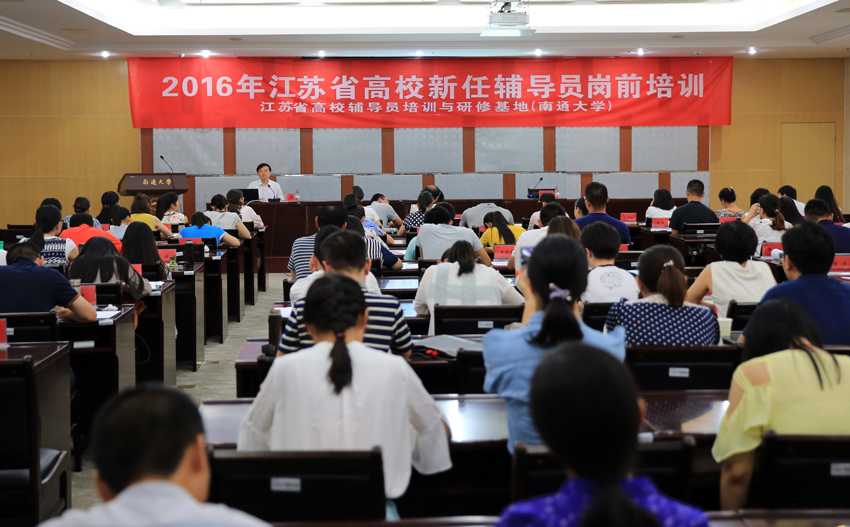 2016年江苏省高校新任辅导员岗前培训班于16日在mg冰球官网开班,培训历时6天,将以专题讲座、讨论交流、工作坊等方式从高校辅导员岗位认知、思想政治教育的任务、校园文化建设、党团组织建设、学生学业指导、大学生心理健康教育、大学生职业生涯规划及就创业指导以及辅导员自我成长与发展等方面对学员进行全面培训。培训结束后,将对全体学员进行考核。