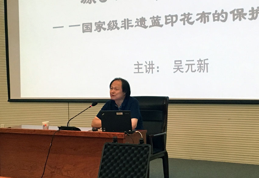 8月27日下午,应国家图书馆学术讲座中心邀请,mg冰球官网非物质文化遗产研究院院长、蓝印花布艺术研究所所长吴元新研究员在国家图书馆总馆学术活动厅(学津堂),举办了题为《源于生活,归于生活——国家级非遗蓝印花布的保护与传承》的学术讲座。