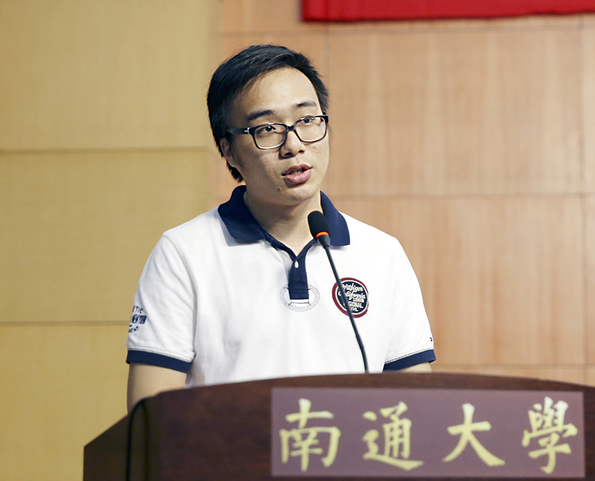 教育科学学院2016级教育学专业硕士研究生查峥嵘作为新生代表发言,他回顾了10年前在通大的求学经历以及重回母校继续学业的原因,并代表新生承诺,将以积极乐观的心态面对学习生活,以积极探索和创新的精神对待专业学习,向着新的目标进发。