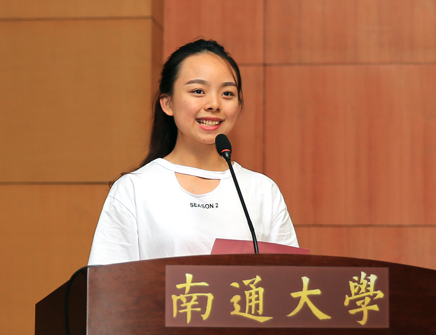 学生代表、文学院中文141班邓雅文同学发言。