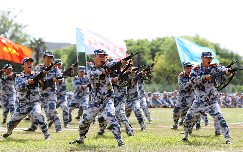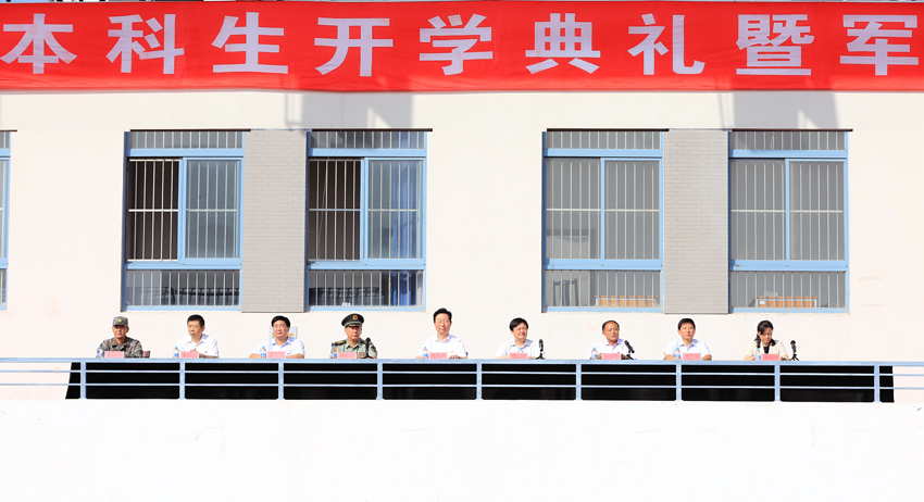校党委副书记、副校长江应中主持开学典礼。校领导董正超、樊小东、姜佩剑,中国人民解放军某部政治部主任季拥军及南通军分区承训官兵,学校相关职能部门和学院负责人出席开学典礼暨军训成果汇报大会。