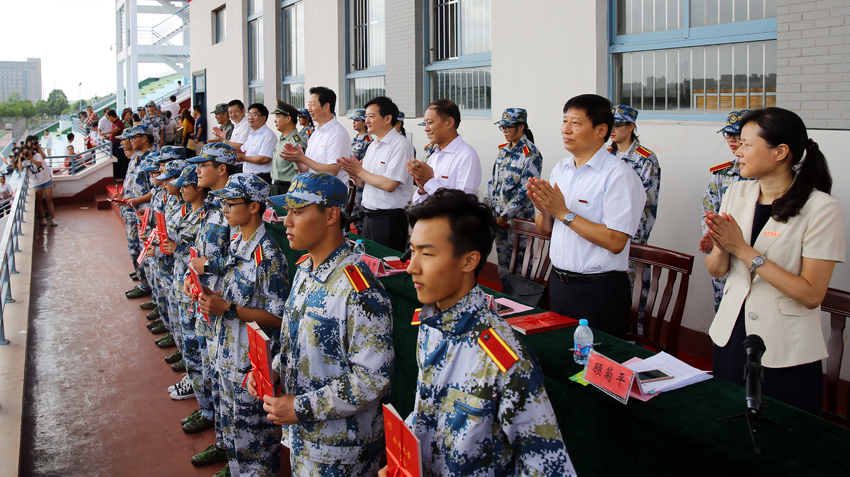 军训成果汇报表演结束后,副校长顾菊平宣读关于表彰2016年学生军训工作先进集体、先进工作者、优秀教官和优秀学员的决定。共有10个先进单位、41名先进工作者、16名优秀教官、484名优秀学员受表彰。与会领导为获奖单位和个人颁奖。