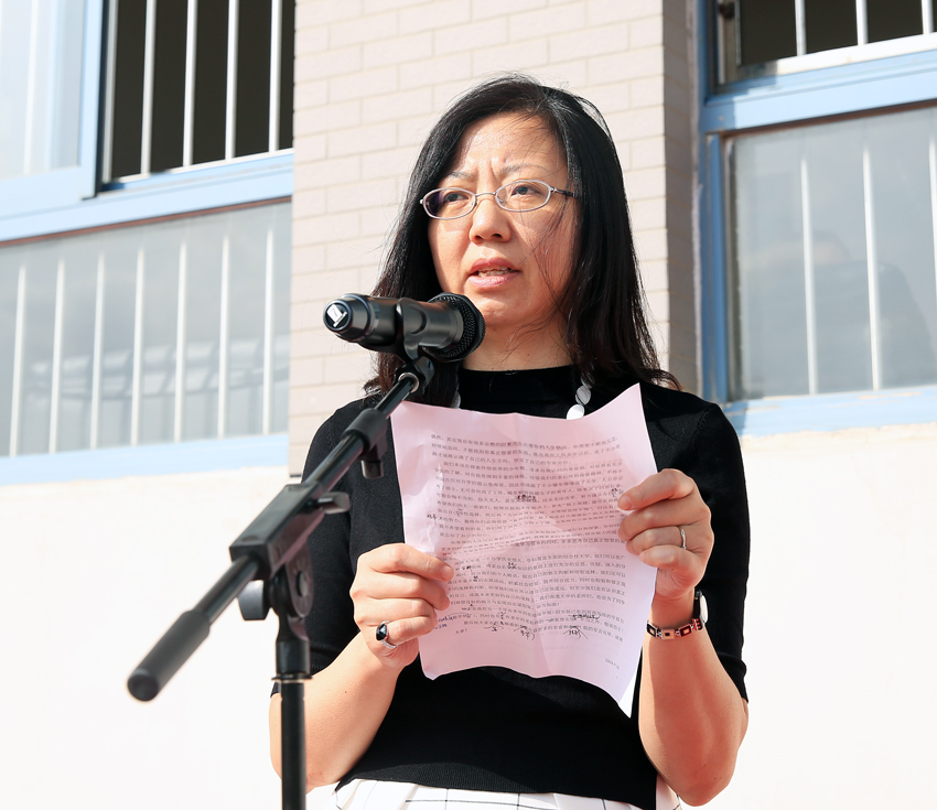 政治学院周围教授作为教师代表发言,她结合自己的成长经历,勉励同学们在大学生活中要不断反思,持续追问,认清人生方向,坚定专业定位。她表示,老师们会为每位同学理想目标的确立与实现出谋划策,助力加油。