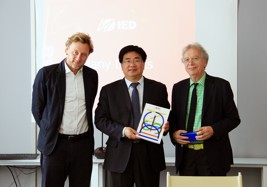 董正超副校长与欧洲设计学院交换礼物。