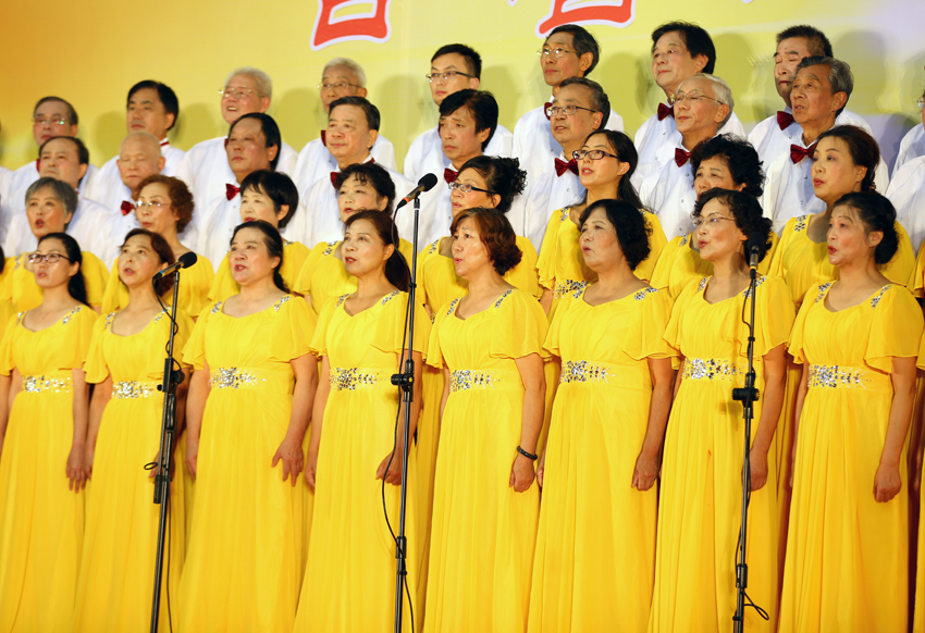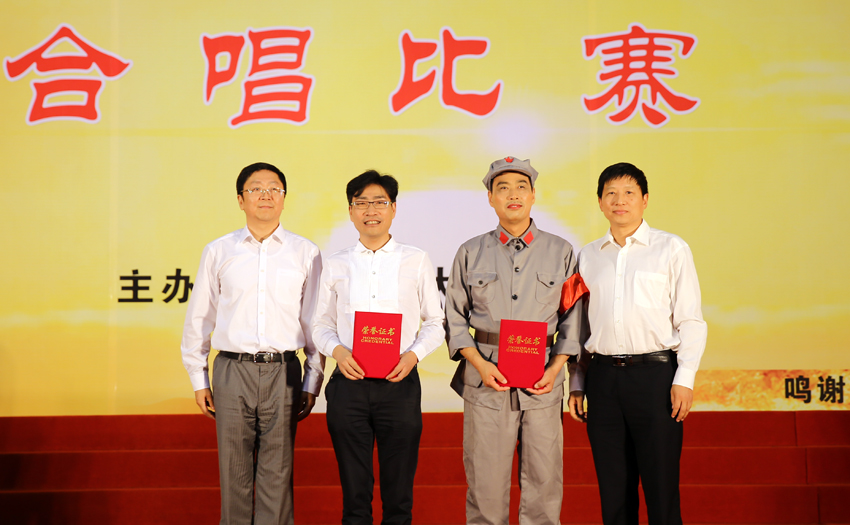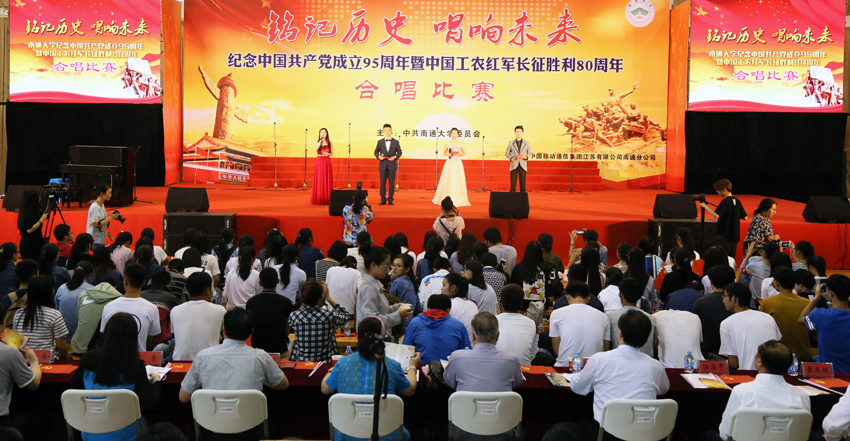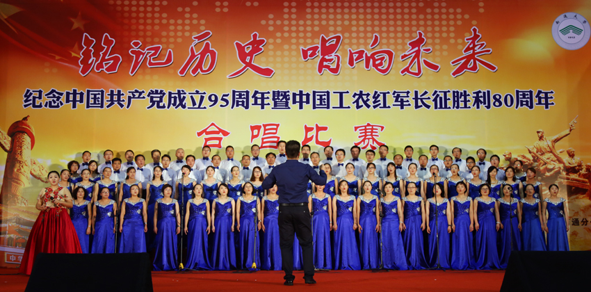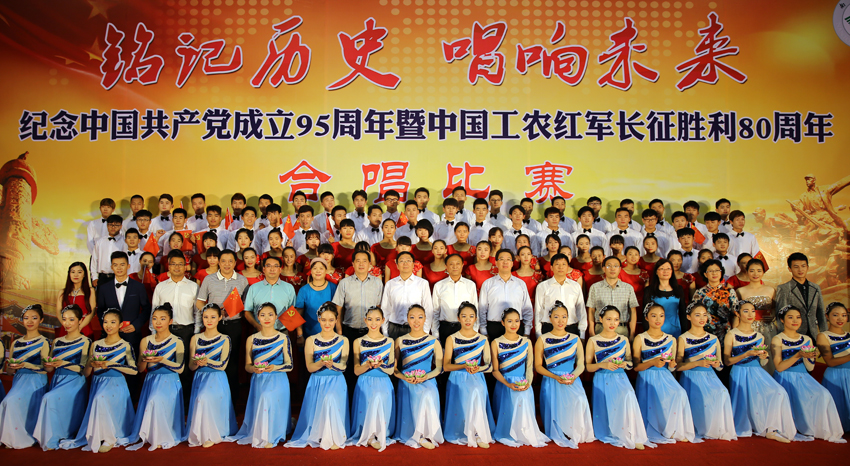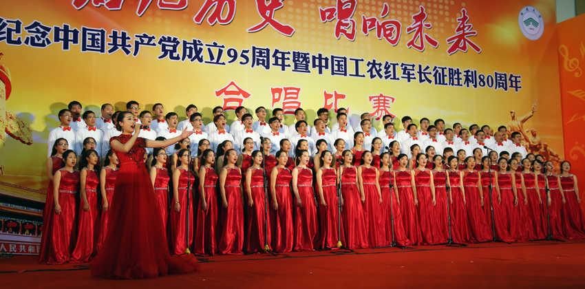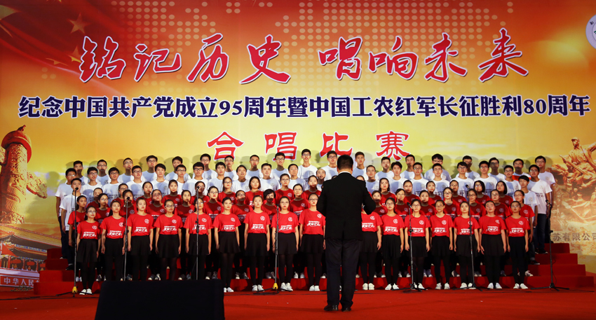 mg冰球官网举行庆祝中国共产党成立95周年暨中国工农红军长征胜利80周年合唱比赛。(苗建 摄)