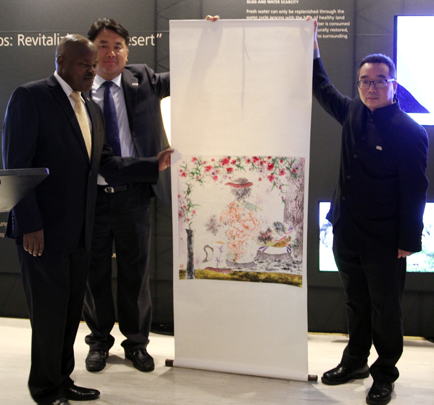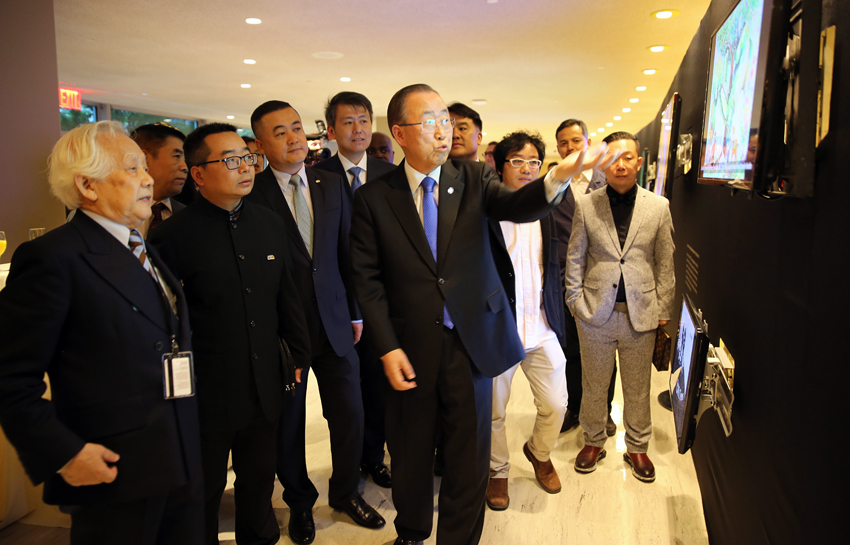 9月29日,mg冰球官网艺术学院教师、国家一级美术师张卫等国内6位画家作为“森林中国”组委会代表应邀出席联合国总部“拯救地球”绿色团展览会(UN Head quarters “Save the Earth” Green Corps Exhibition)开幕式,张卫代表中国艺术家向联合国捐赠画作,并参加生态保护主题公益作品展及沙漠化专家研讨会等活动。联合国秘书长潘基文出席活动,并兴致盎然欣赏了画作。