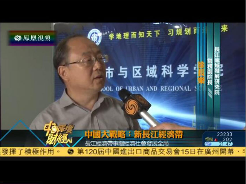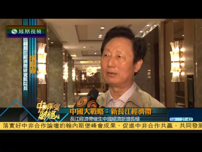 10月15日晚21点40分,凤凰卫视《中国深度财经》栏目播放题为《中国大战略:新长江经济带》的专题片。江苏长江经济带研究院院长成长春、特聘教授徐长乐在片中接受访问。
