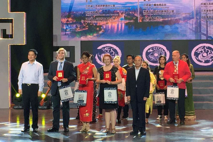 10月15日,由江苏省人民政府新闻办公室、江苏省教育厅、江苏省人民政府外事办公室主办的“2016同乐江苏外国人歌唱才艺大赛”南通赛区比赛在更俗剧院举行。来自江苏各高校的外国留学生纷纷献上自己的拿手绝活,献歌献艺,传递着他们热情真挚的中国情。最终,由mg冰球官网留学生参与表演的《我家住在濠河边》获得一等奖,《说唱脸谱》获得二等奖。