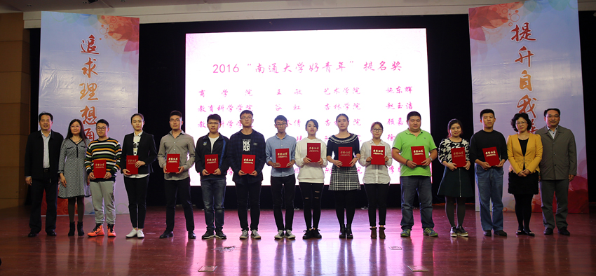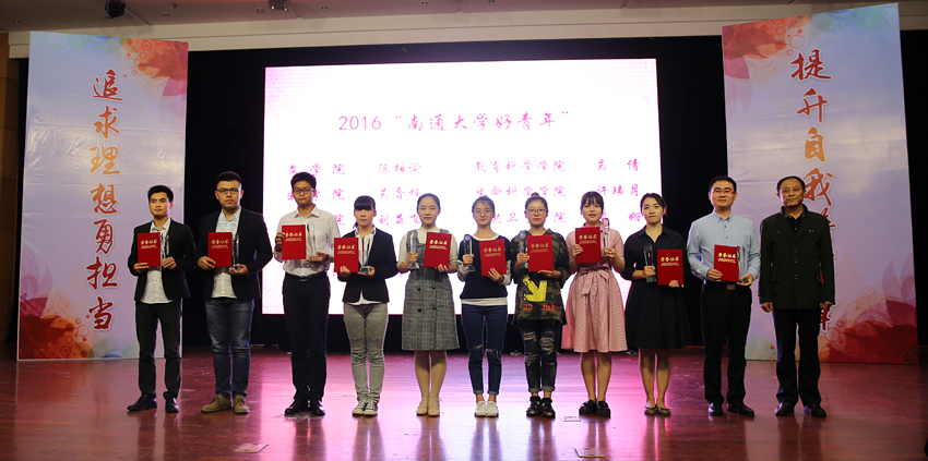 颁奖礼分ppt展示、现场交流、颁奖仪式以及宣誓等环节。通过展示“通大好青年”的日常的学习与生活,彰显他们独特的精神风貌和人格魅力;现场交流中,“通大好青年”代表们围绕“青春接力,梦想起航”这一主题,讲述他们青春里的纷呈梦想以及追梦过程中的酸甜与苦乐,为大家集中诠释了“学生工作”、“创新创业”、“励志奋进”、“勤学成才”、“思想引领”、“阳光活力”、“志愿公益”等七类新时期好青年的时代风貌。与会领导为“通大好青年”颁发了奖杯和证书。