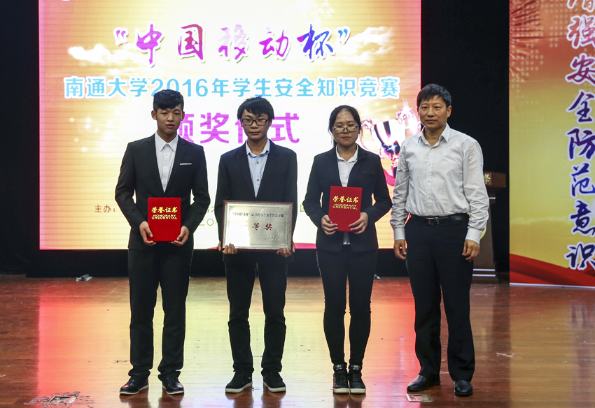 10月26日下午,由保卫处、学生工作处、团委共同举办的“中国移动杯”2016级学生安全知识竞赛决赛在大学生活动中心举行,经过激烈的角逐,电子信息学院获得竞赛一等奖。副校长樊小东,市公安局内保支队支队长袁洋鸣,市教育局安全保卫监督管理处处长陈新荣等出席活动。