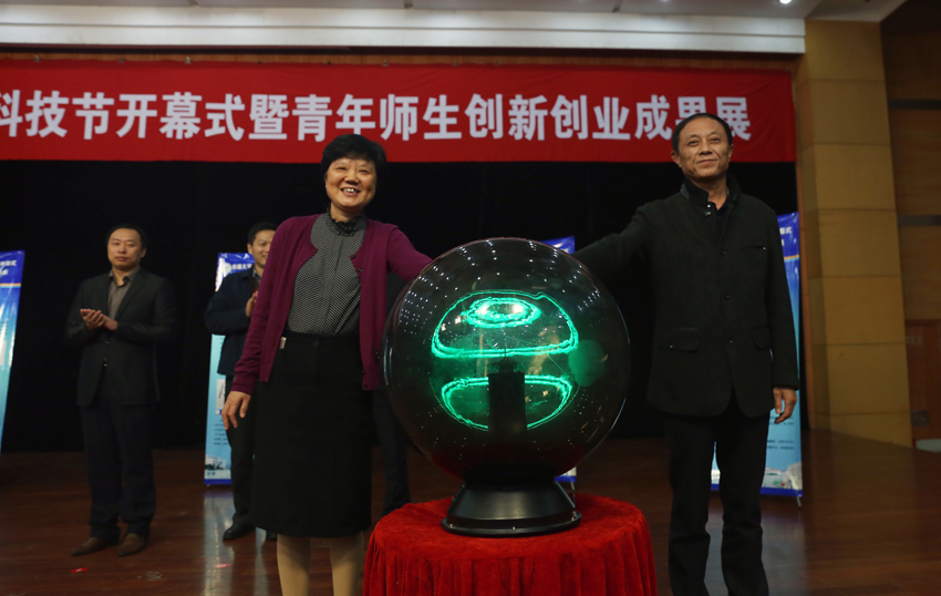 10月28日下午,mg冰球官网第十二届科技节开幕式暨青年师生创新创业成果展在大学生活动中心举行。校党委副书记、副校长江应中,副校长丁斐出席开幕式并启动开幕式水晶球。