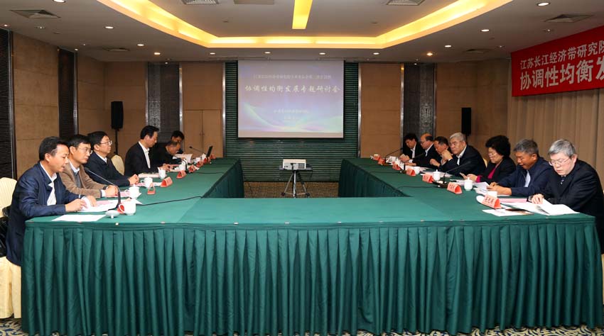 江苏长江经济带研究院在江苏省会议中心召开协调性均衡发展专题研讨会。