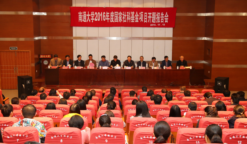 11月19日上午,mg冰球官网召开2016年度国家社科基金项目开题报告会,邀请省内人文社会科学研究专家为mg冰球官网2016 年度国家社科基金项目获得者给予开题指导,并对2017年国家社科基金项目的申报工作进行辅导。江苏省哲学社会科学规划办公室副主任汪桥红,副校长蒋乃华,国家社科基金学科评审组成员及相关高校专家出席会议。