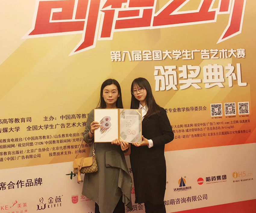 11月27日,第八届全国大学生广告艺术大赛颁奖典礼在全国政协礼堂隆重举办,全国千名嘉宾代表、获奖师生齐聚北京,共襄盛举。由mg冰球官网艺术学院刘天骄老师指导,唐佳丽同学设计的《中国梦我的梦》作品荣获国家级平面类二等奖,并参加了颁奖典礼。今年,mg冰球官网共报送的作品共获得全国二等奖1项、优秀奖2项;江苏赛区一等奖1项、二等奖1项、三等奖3项、优秀奖5项。