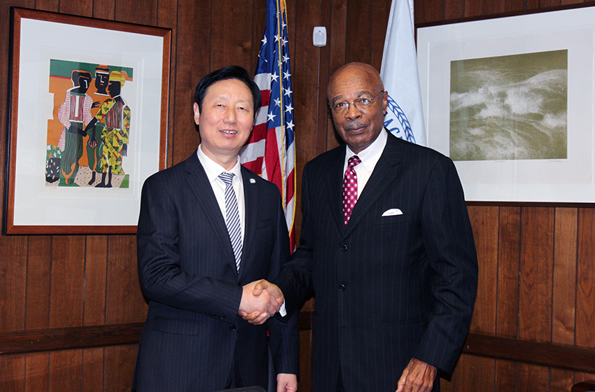 校党委书记成长春会见美国杰克逊州立大学代理校长Rod Paige博士。
