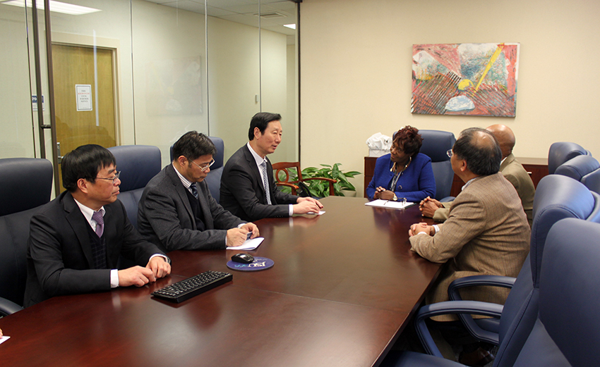 在杰克逊州立大学,成长春一行受到了该校全体校领导和全体学院领导的热情接待,并分别与代理校长Rod Paige博士、常务副校长Evelyn J. Leggette博士、国际交流副校长卡洪博士亲切交谈,感谢他们对两校共建孔子学院的支持。双方共同回顾两校多年来合作交流取得的成效,都希望在此基础上进一步拓展合作交流领域,丰富合作交流内容。