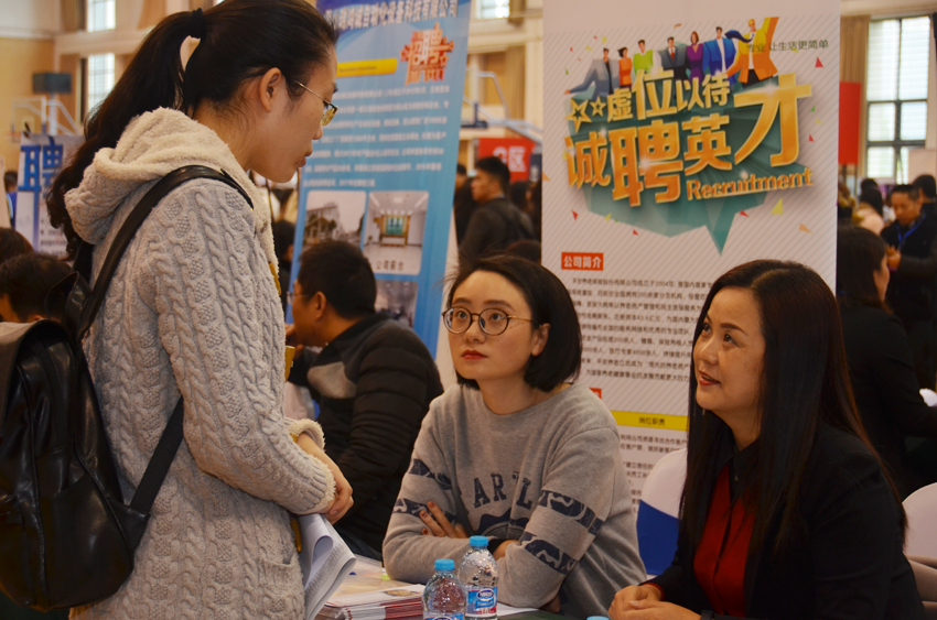 毕业生与用人单位进行洽谈。(校报实习记者 张丽莉/摄)
