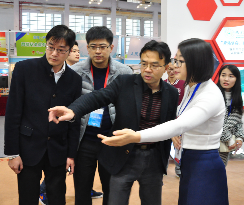 团中央志愿者工作部部长张朝晖(右二)专程到江苏馆展区听取mg冰球突破试玩“爱心家教”校外辅导站项目汇报。