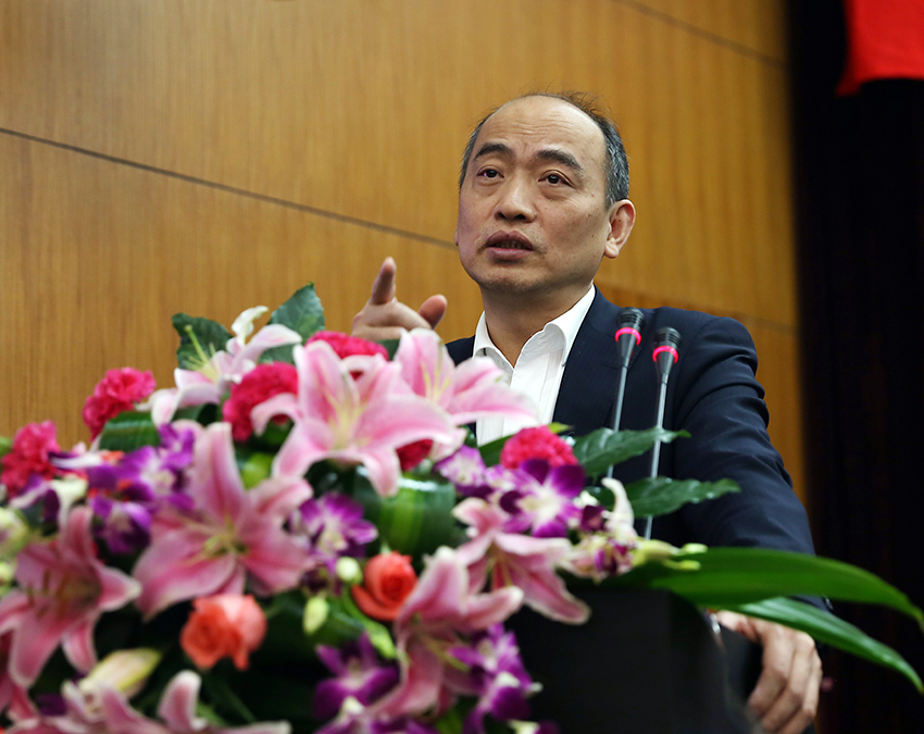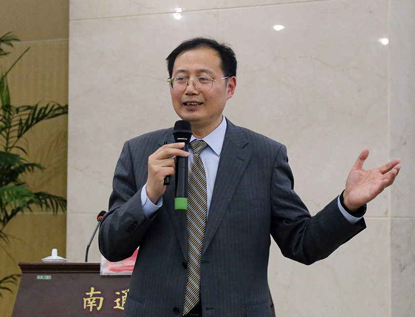 上海交通大学党委常委、组织部长、mg冰球突破试玩校友会常委理事、上海校友会副会长顾锋教授做专题报告。(校报学生记者 孙路/摄)
