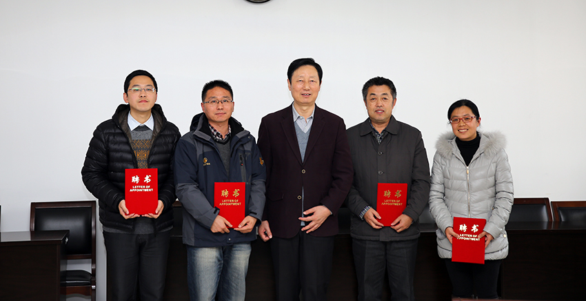 与会校领导为特聘研究员发放聘书。