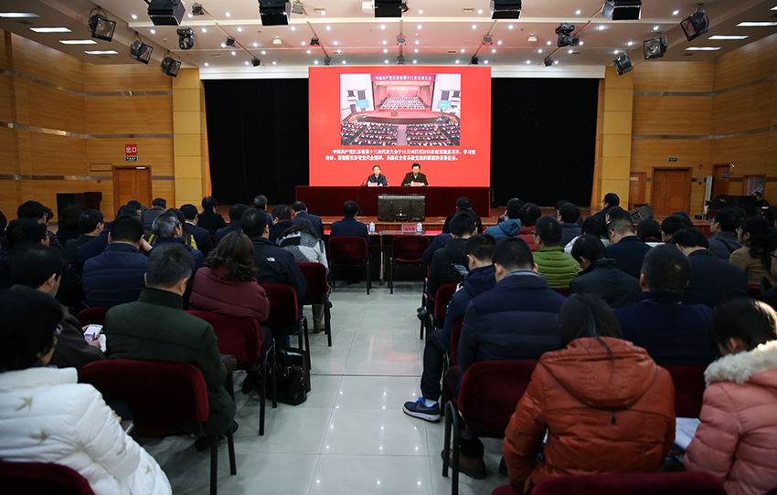 全体校领导,校党委中心组成员,全体中层干部、师生代表出席会议。