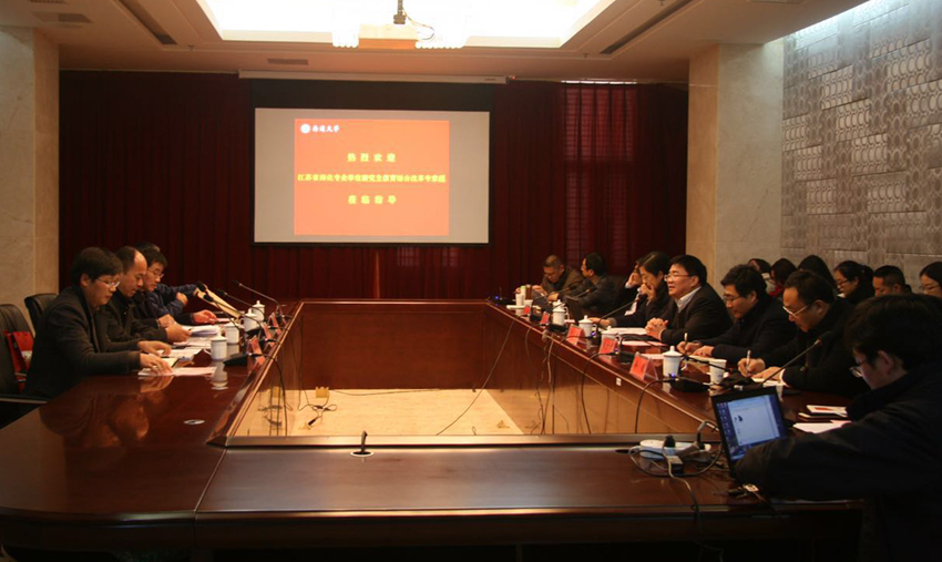 12月15日下午,江苏省教育厅督查组莅临mg冰球官网开展专业学位研究生教育综合改革督查工作。由盐城工学院副院长邵荣、中国矿业大学研究生院副院长査振高、南京财经大学研究生处副处长黄建国和江苏省教育厅研究生教育处挂职干部杨满仁组成的督查组,对mg冰球官网承担的改革项目——《“学位与研究生教育综合管理系统”的完善与使用 ——基于信息技术平台的专业学位研究生教育质量保障体系研究》进行现场督查。校党委书记成长春会见了督查组一行。副校长董正超出席现场督察汇报会。