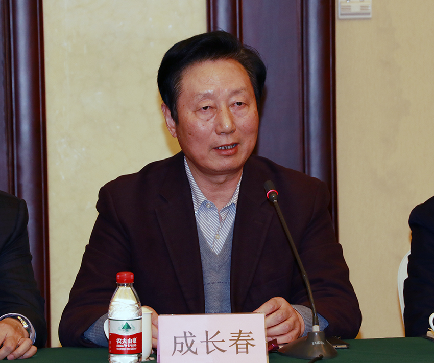 校党委书记、mg冰球突破试玩教育发展基金会第三届理事会理事长成长春作报告。