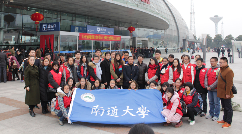 2017年寒假期间,由校团委、管理学院和中华慈善博物馆以及校团委、杏林学院和南通火车站联合组织的90名“莫文隋”青年志愿者组成两个志愿服务专项团分别在南通市区各大社区与南通火车站开展志愿服务活动。
