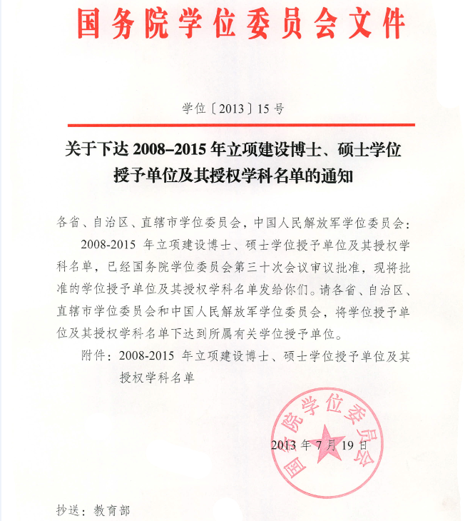 2013年7月19日,国务院学位委员会发文,mg冰球突破试玩被增列为博士学位授予单位。